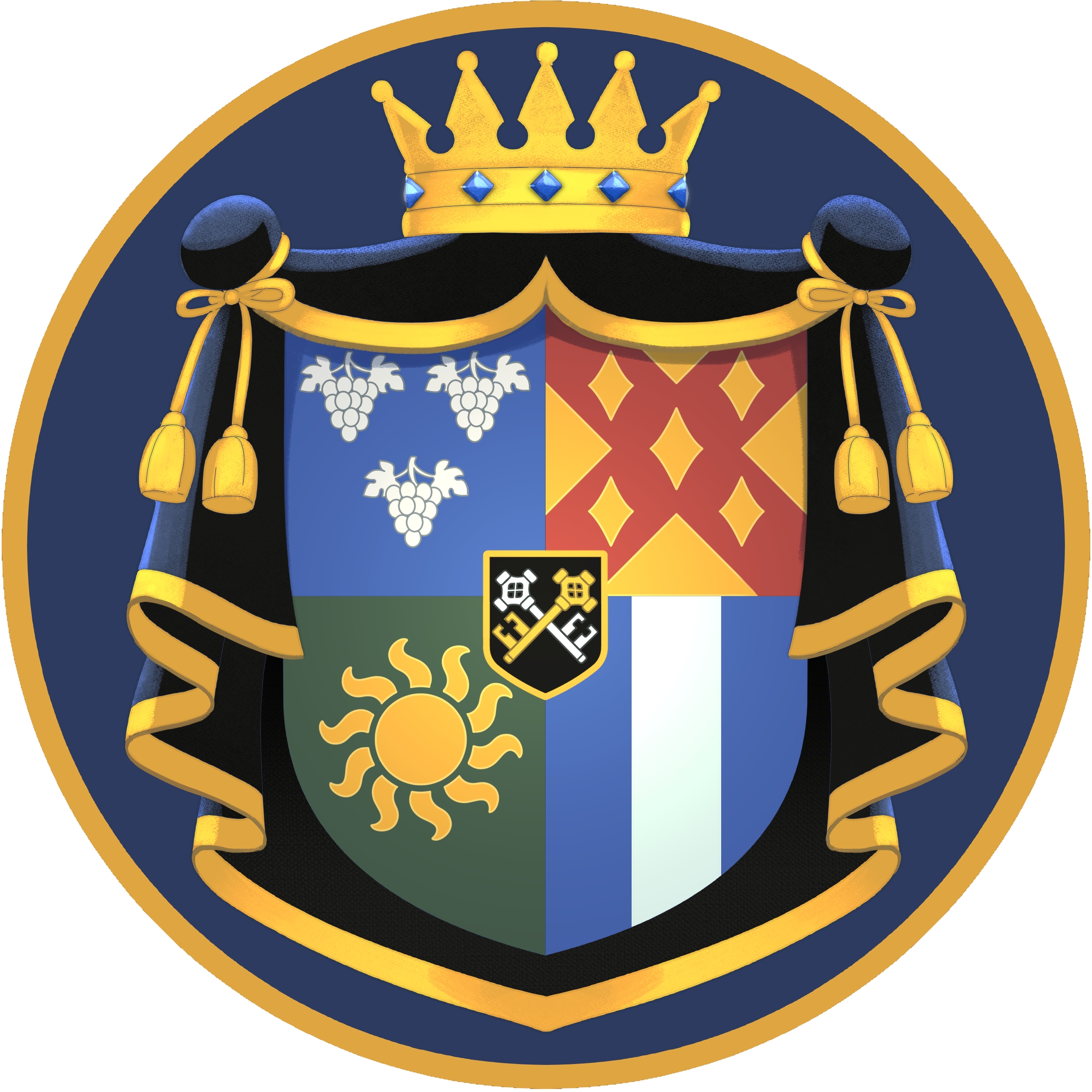 Royal Coat of Arms: The symbol of House Hathelus is a shield divided into four quadrants, representing the arms of Vinaria, Almoria, Panethria, and Galway, with the coat of arms of Domenica superimposed in the middle. (Crutiera is a lesser principality which is technically under the Kingdom of Panethria and nobody wants to spend the money to redesign the shield.)
