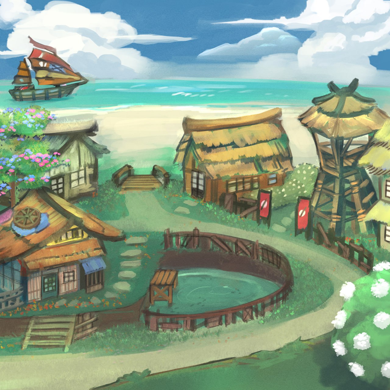 Flying Fish: A handmade flag popular with Sea Ronin children. It looks like a colorful fish with a flapping tail, and may be strung up on a flagpole or flown like a kite.